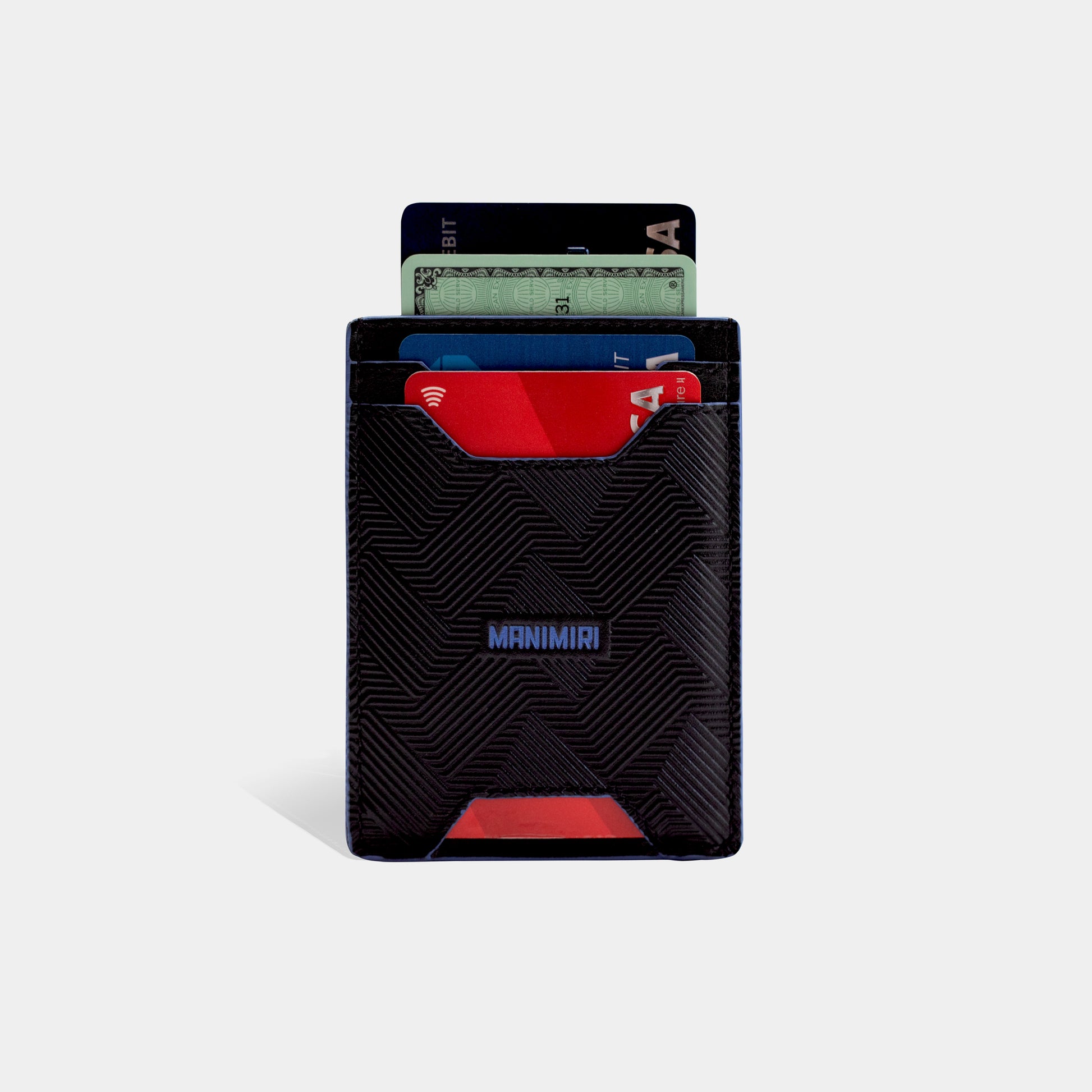 - Four card slots and one central pocket (6 to 8 cards)